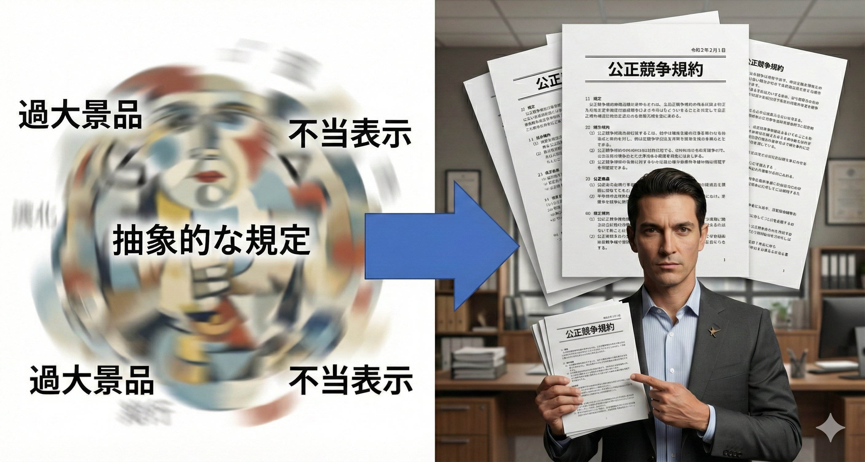 公正競争規約は、この景品表示法の抽象的な部分を補完します。