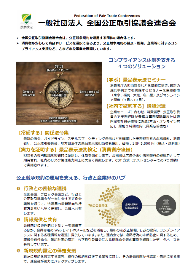 一般社団法人全国公正取引協議会連合会の概要や、活動内容などをご紹介いたします。